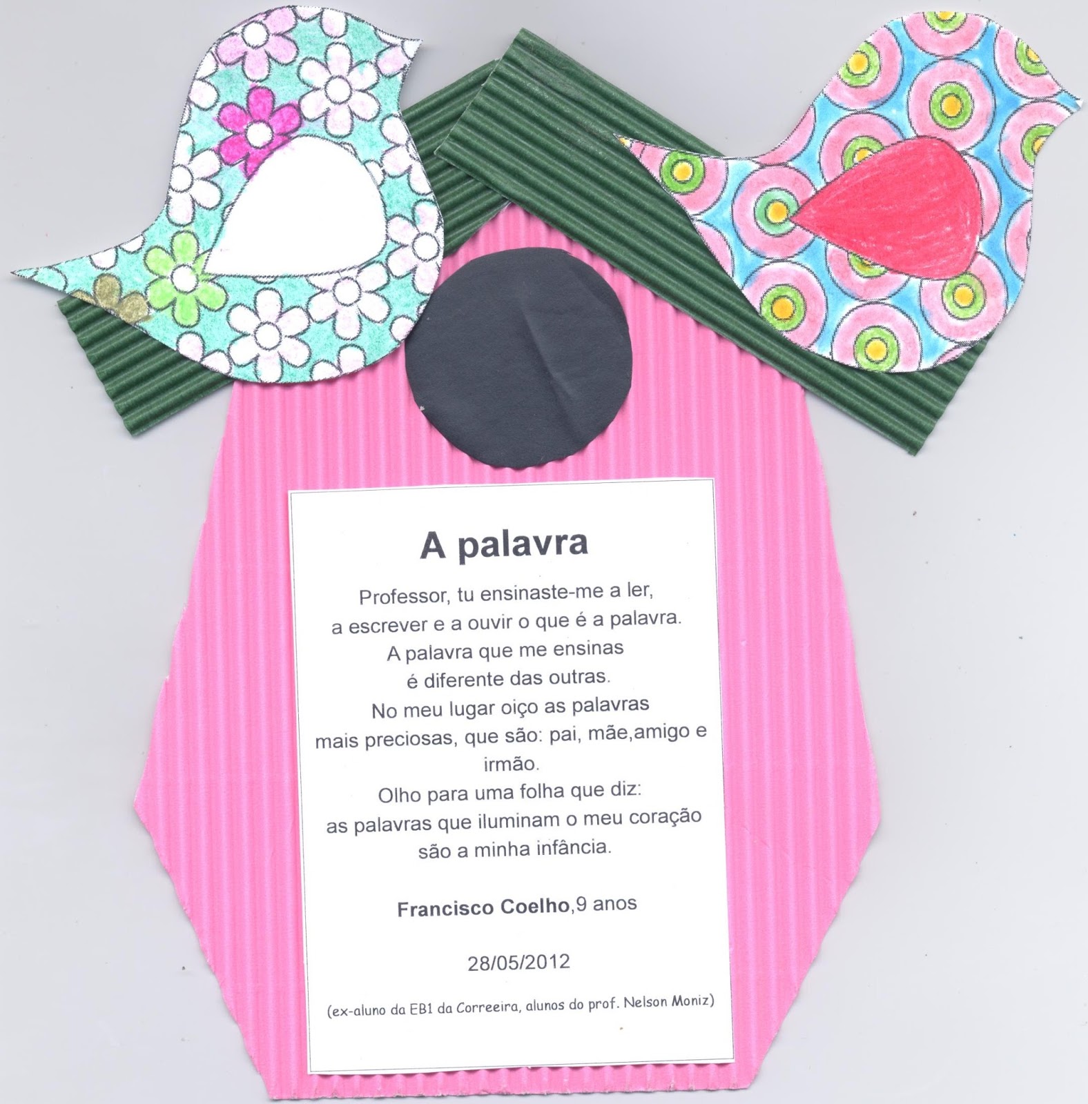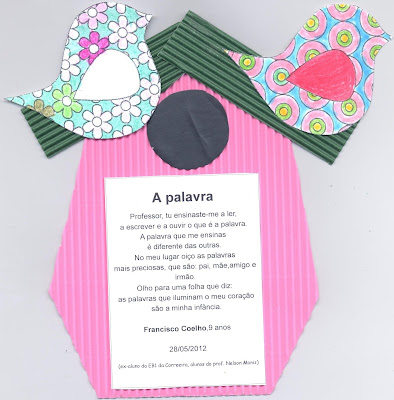 - Construção de casinhas de pássaros em cartolina, onde se colocaram os poemas.